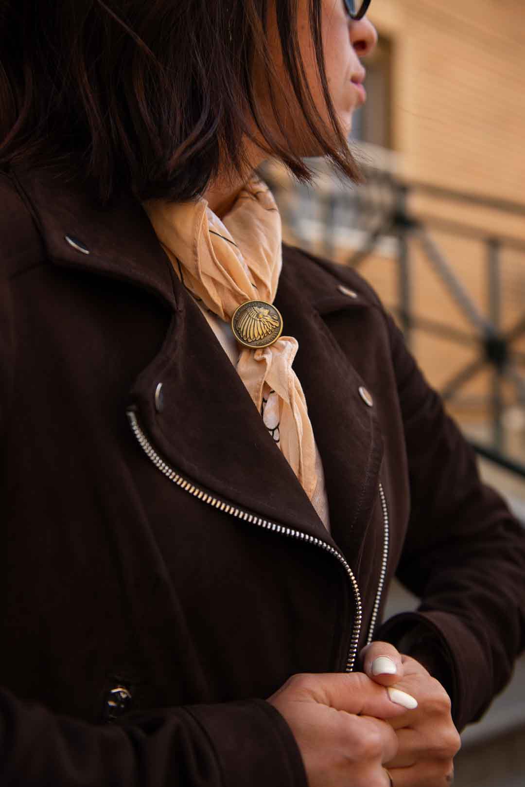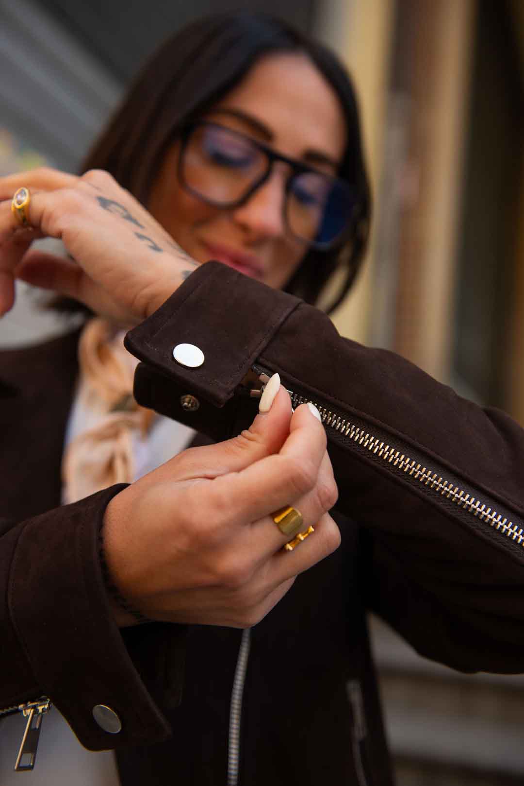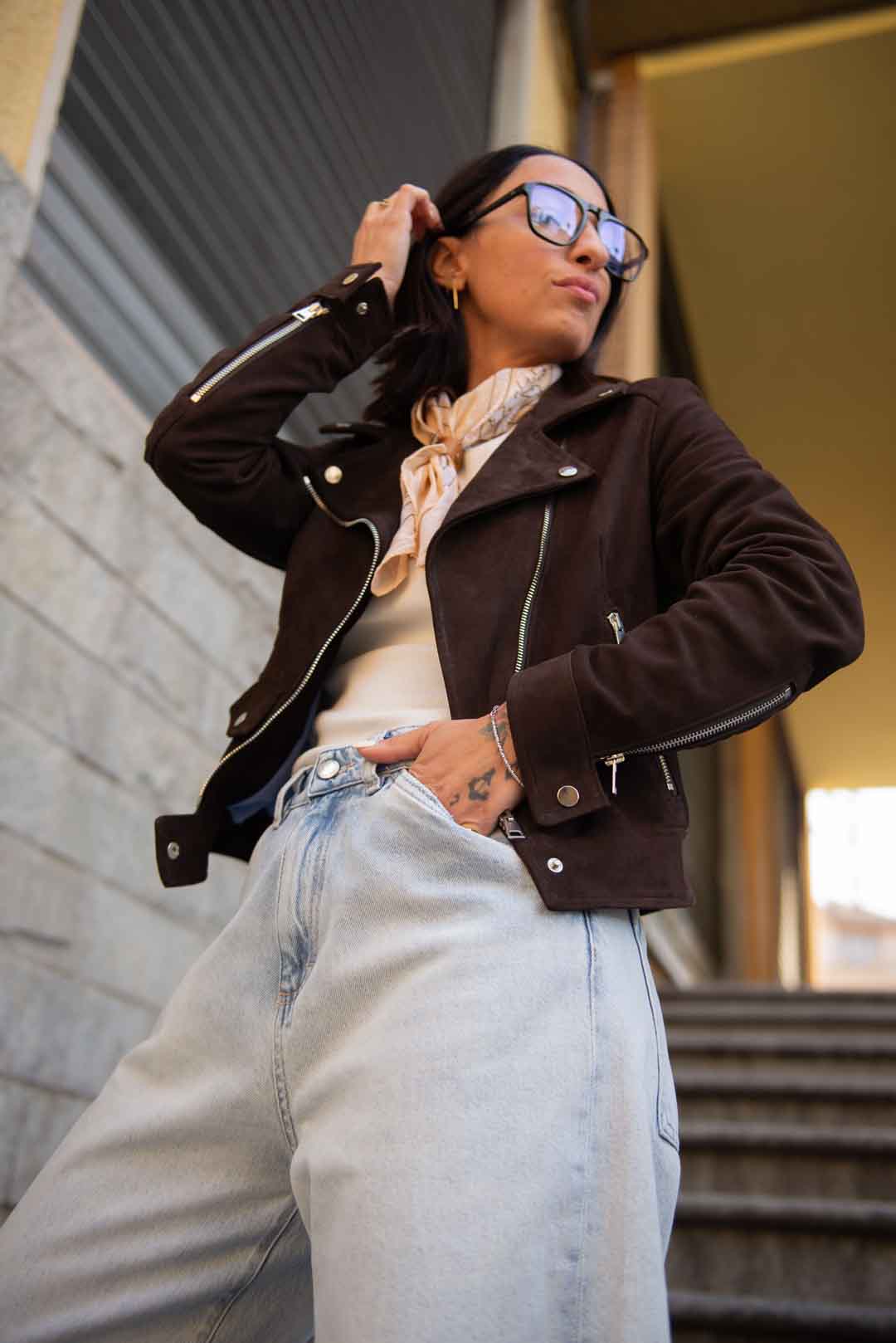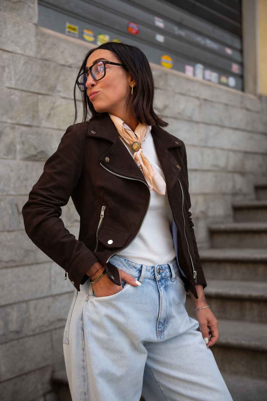 Chiodo in vera pelle scamosciata, con fodera interna in cotone zip e bottoni silver col. testa di moro vestibilità aderente