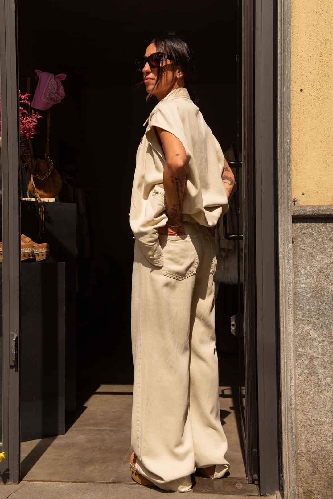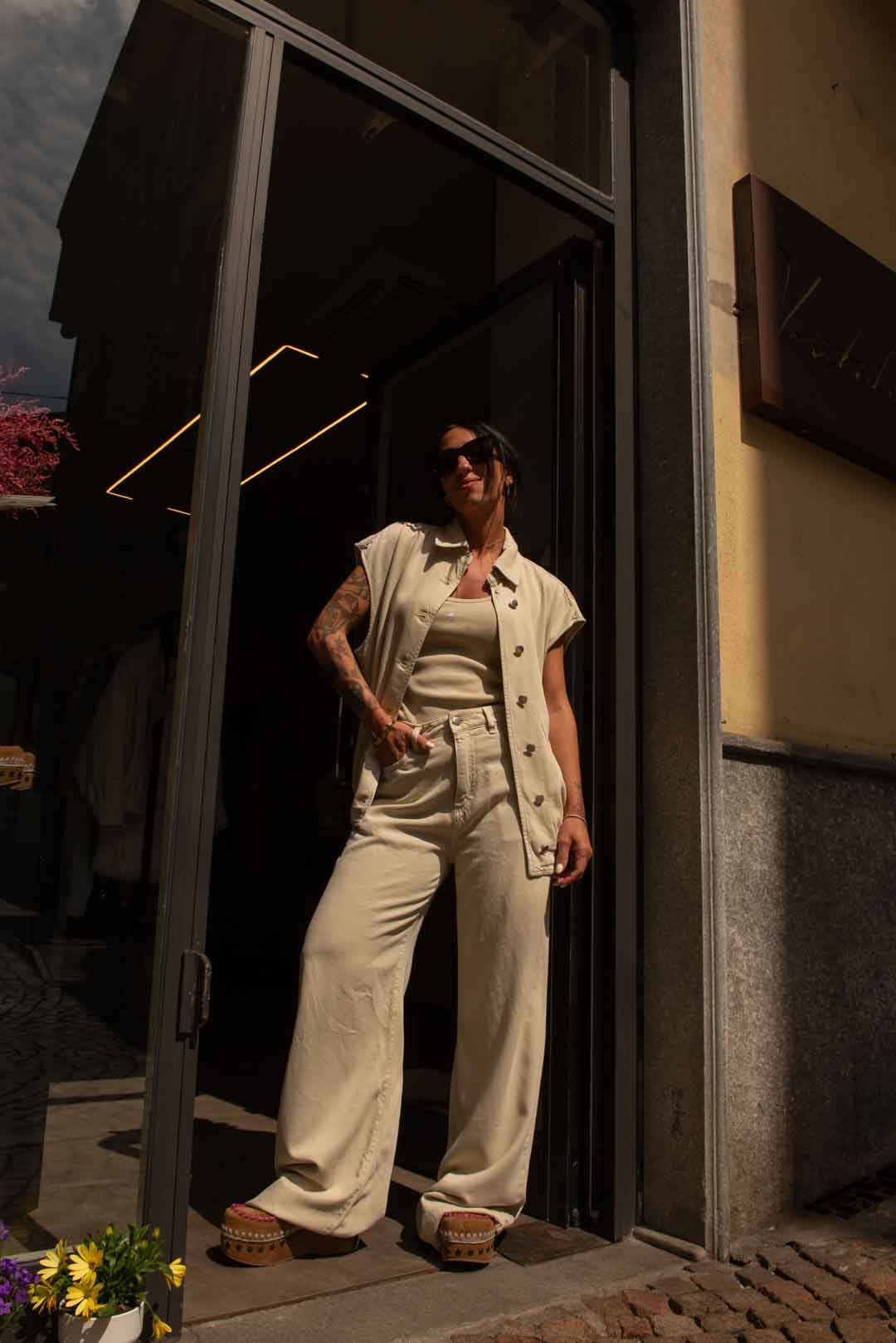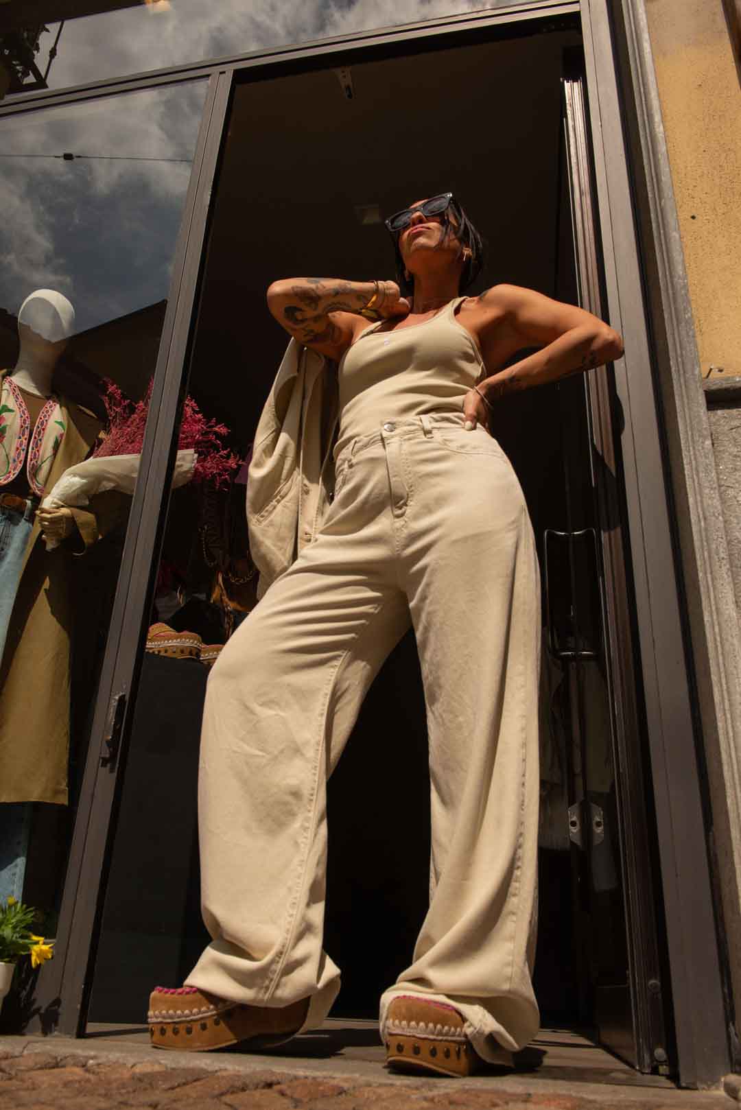 la modella è alta 1.56 pesa 44kg indossa taglia 24