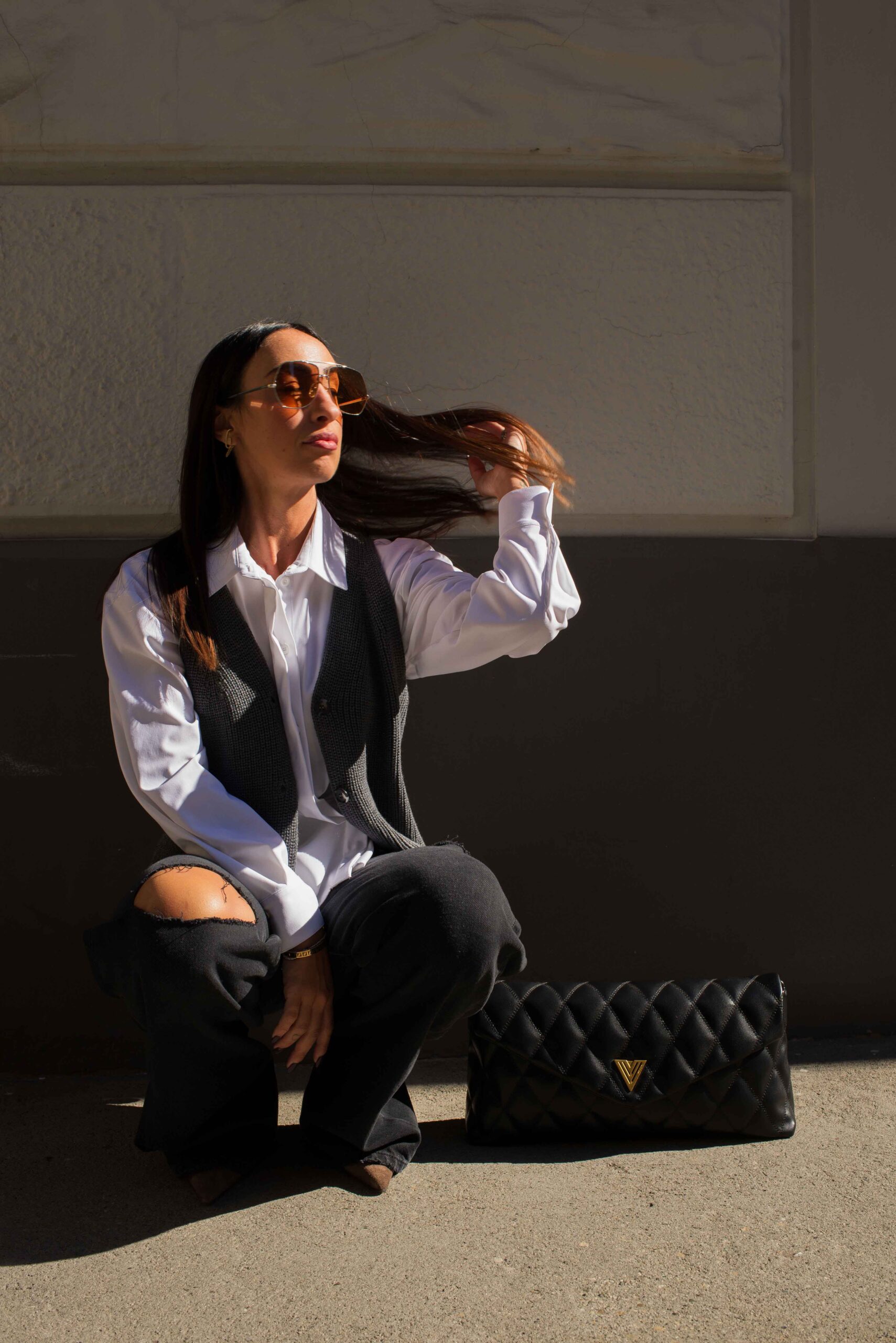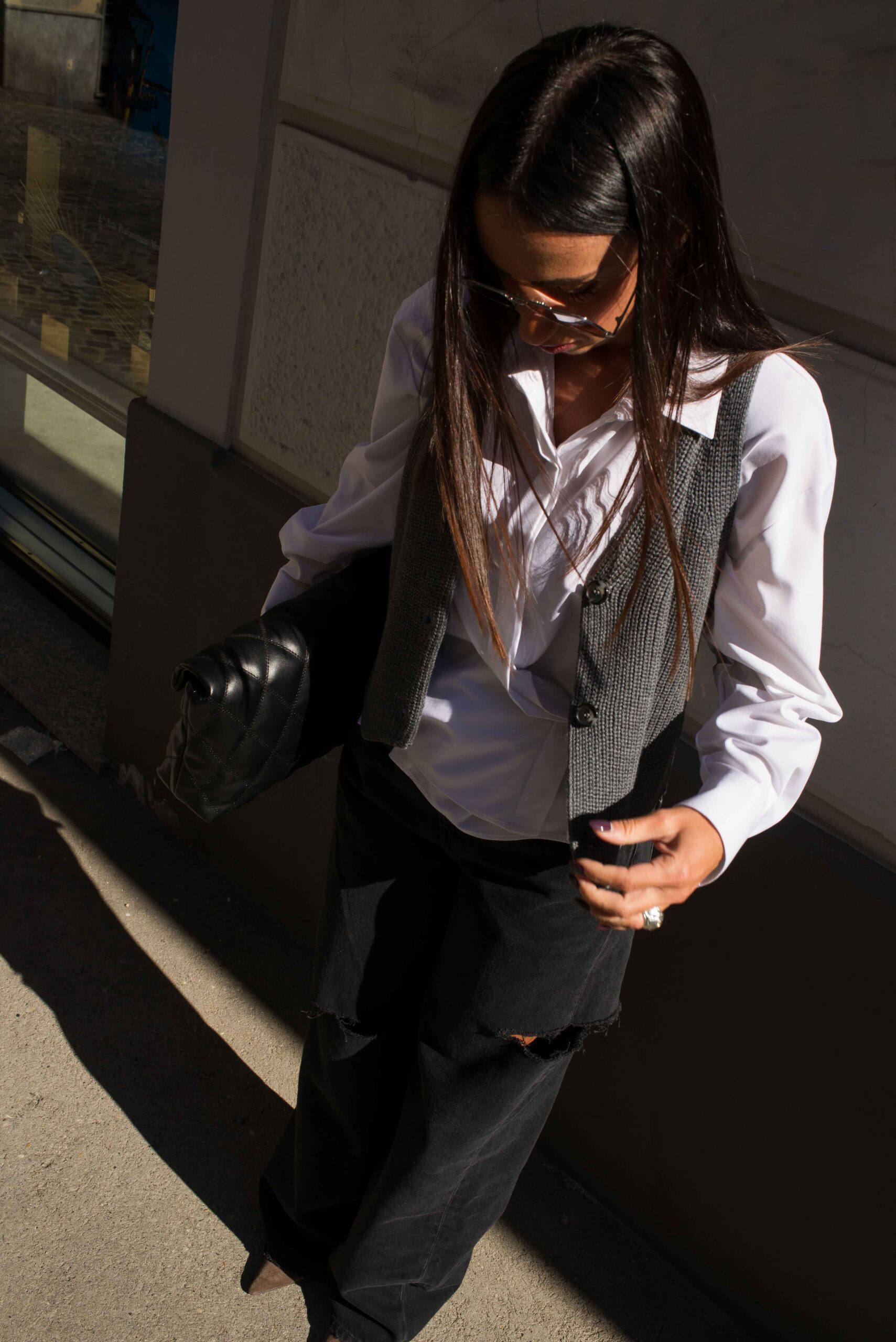 la modella è alta 1.56 pesa 43kg indossa taglia 25