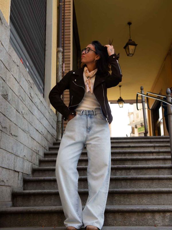 la modella è alta 1.56 pesa 44kg indossa taglia 40