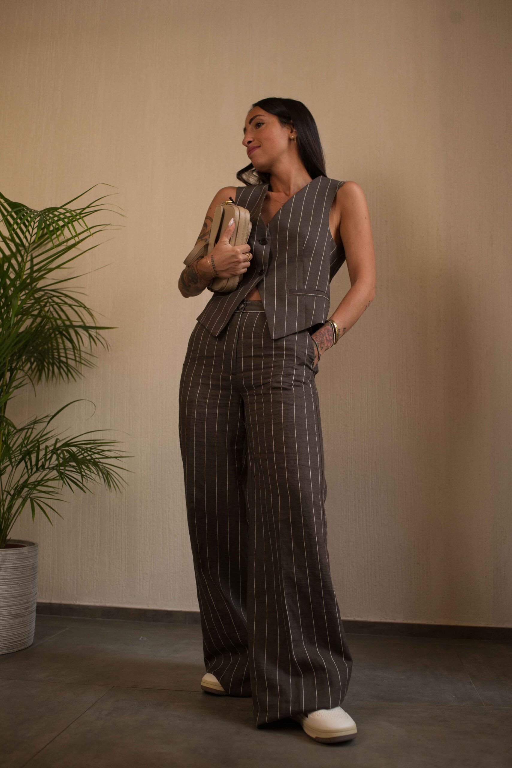 Pantalone a vita alta, fit palazzo