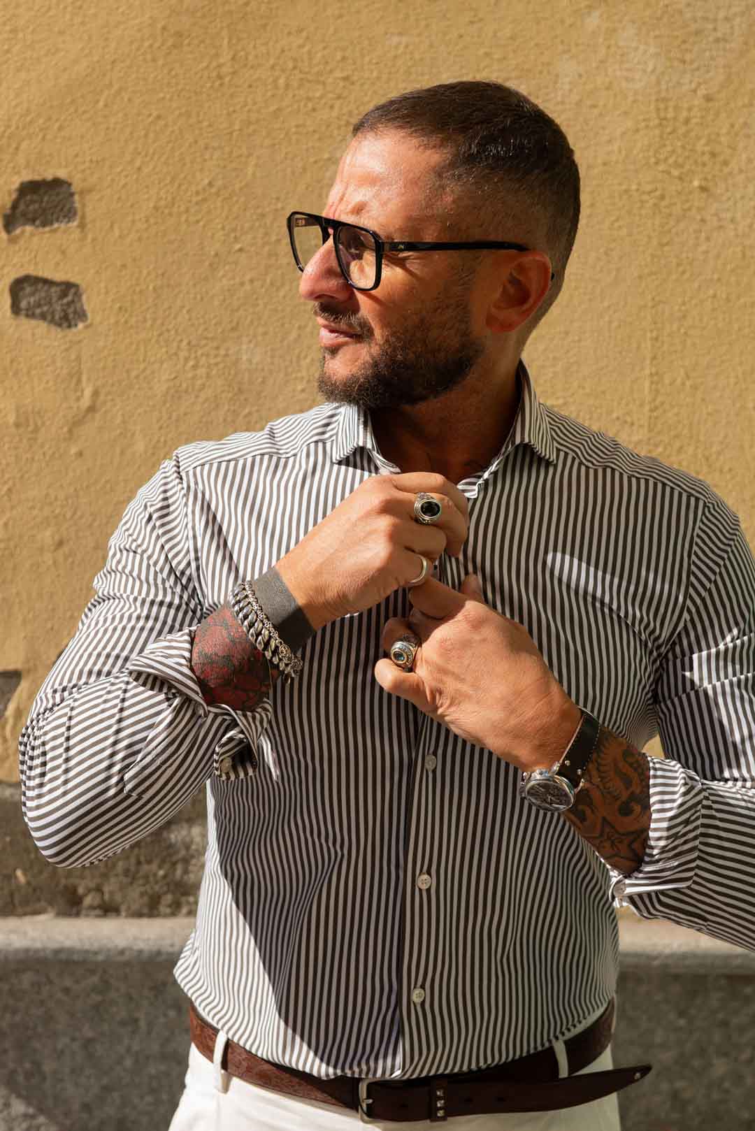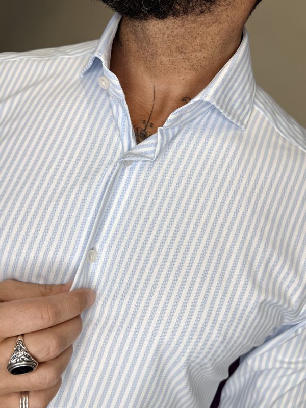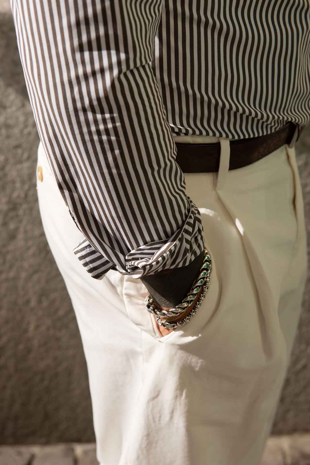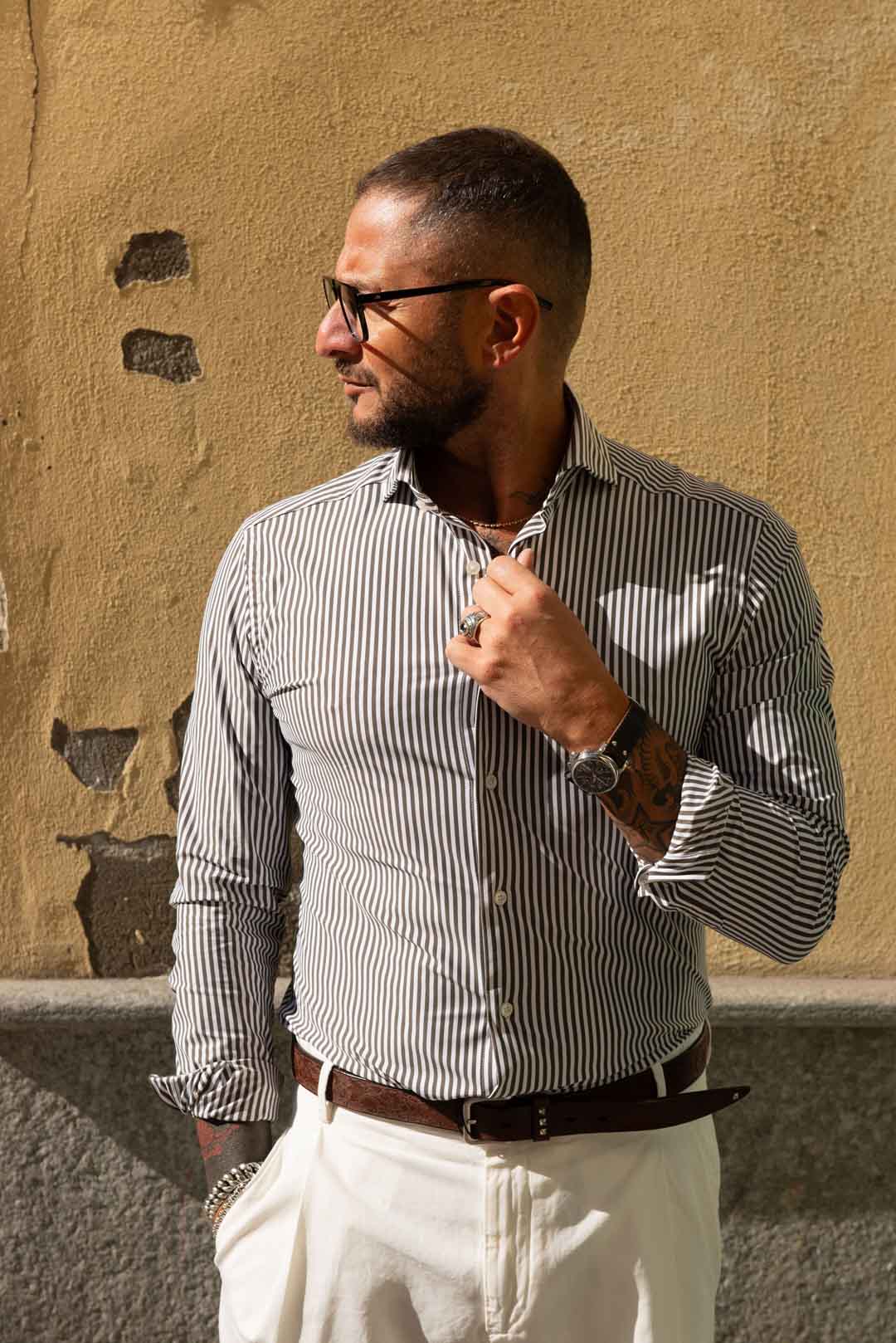 Ideali per chi non rinuncia alla camicia nemmeno in estate, la fantasia bacchettata è presente anche all’interno per rendere questo prodotto ancora più sofisticato