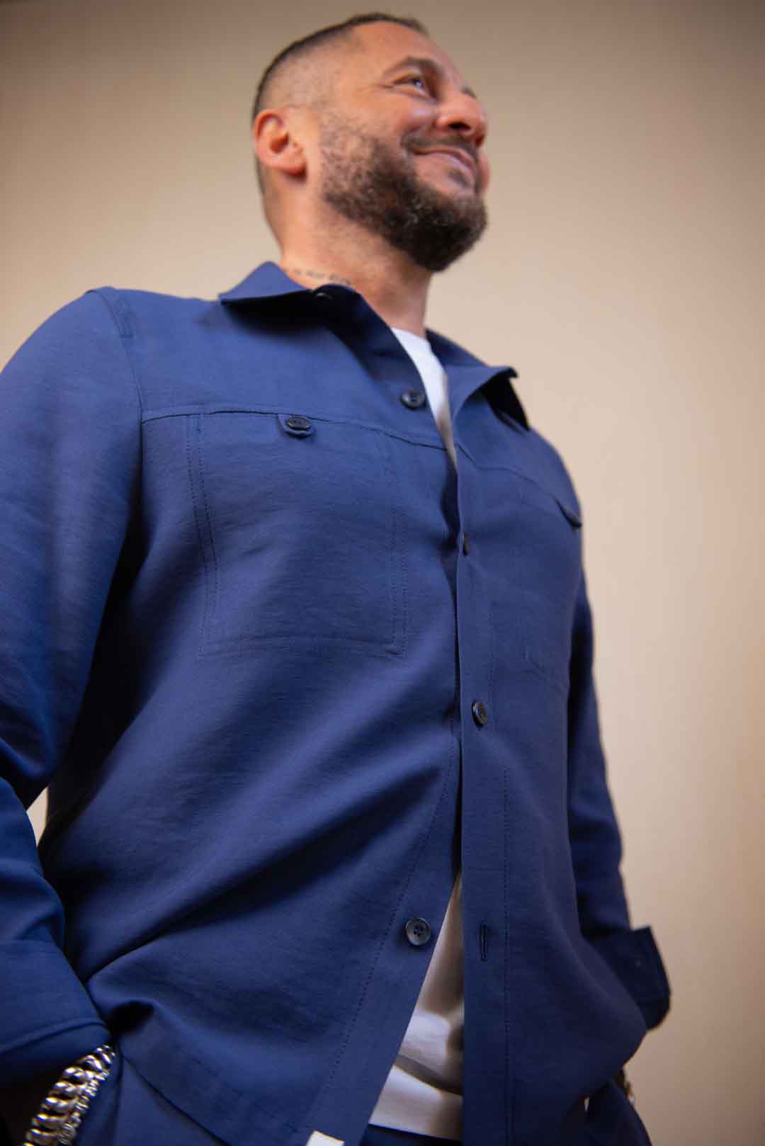 il modello è alto 1.74 pesa 73kg indossa taglia L