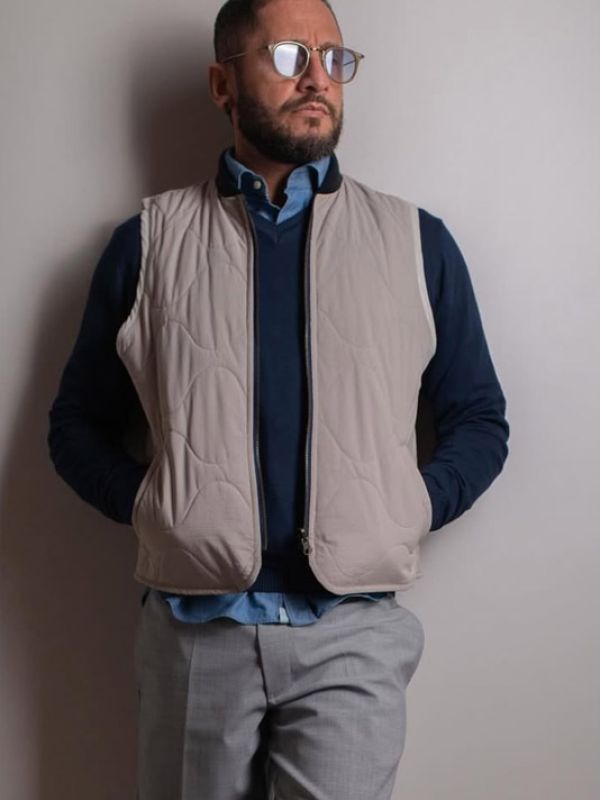 il modello è alto 1.74 pesa 73kg indossa taglia S