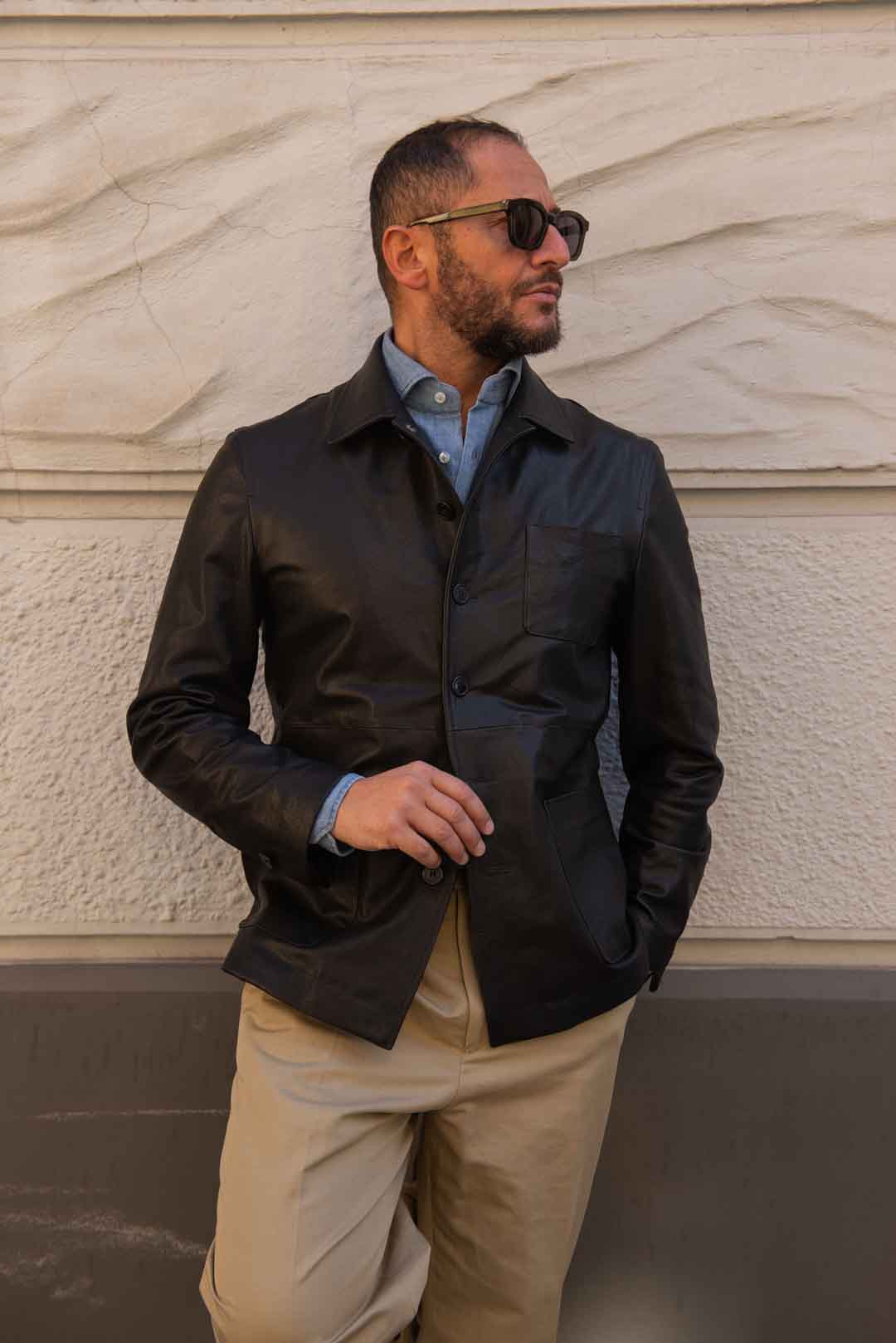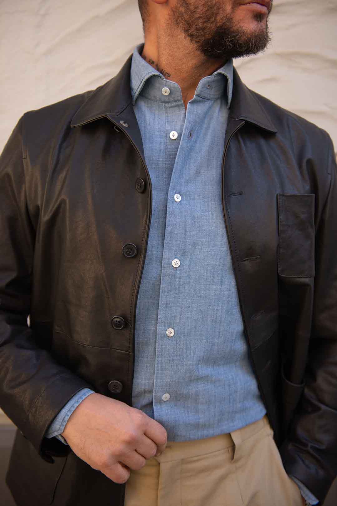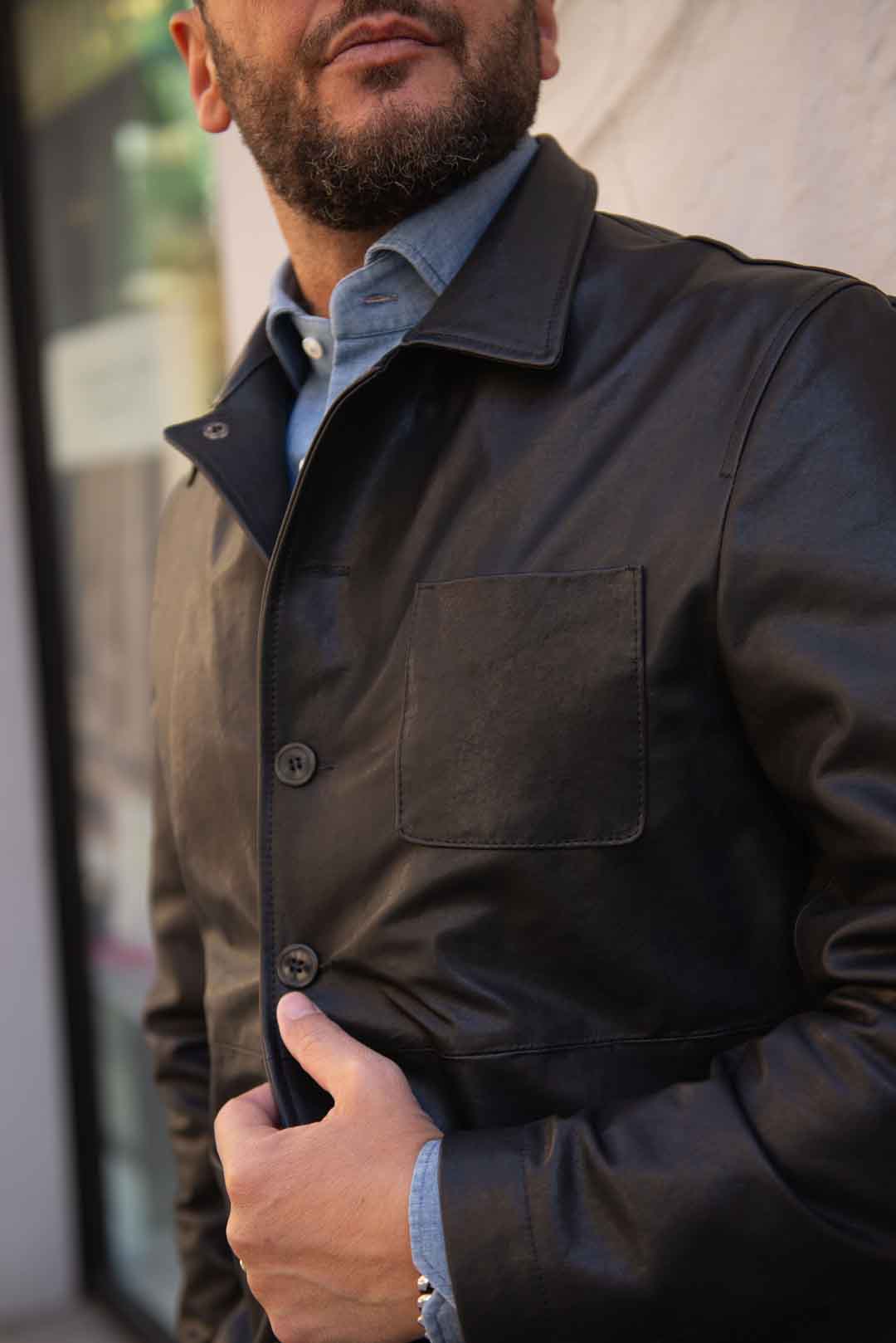 Giacca in vera pelle vegetale sfoderata col. nero art. MT06