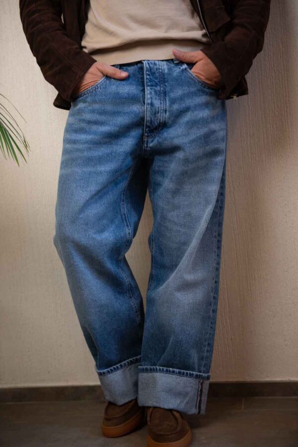 Jeans in cotone, con svolto cucito, fondo 22cm