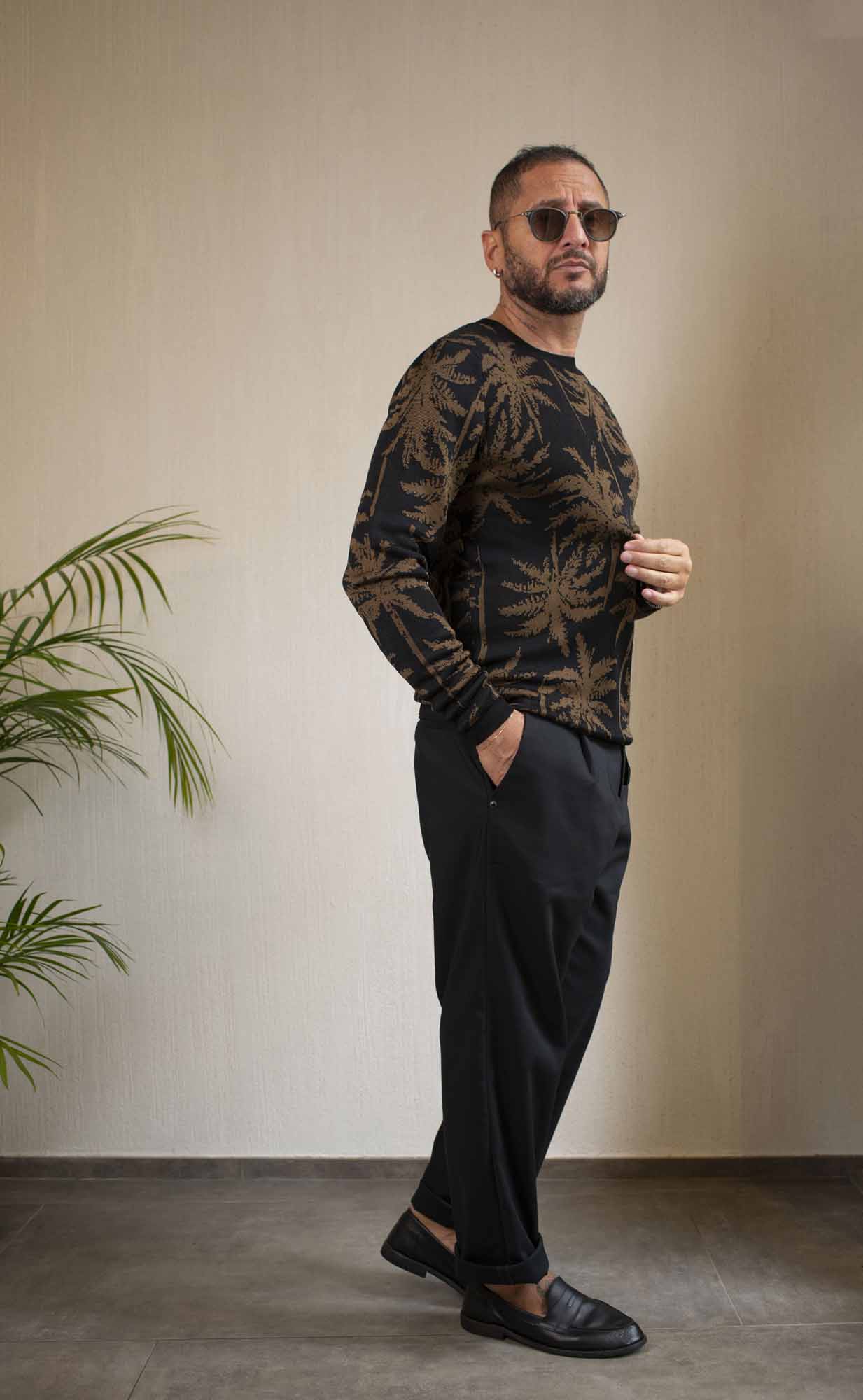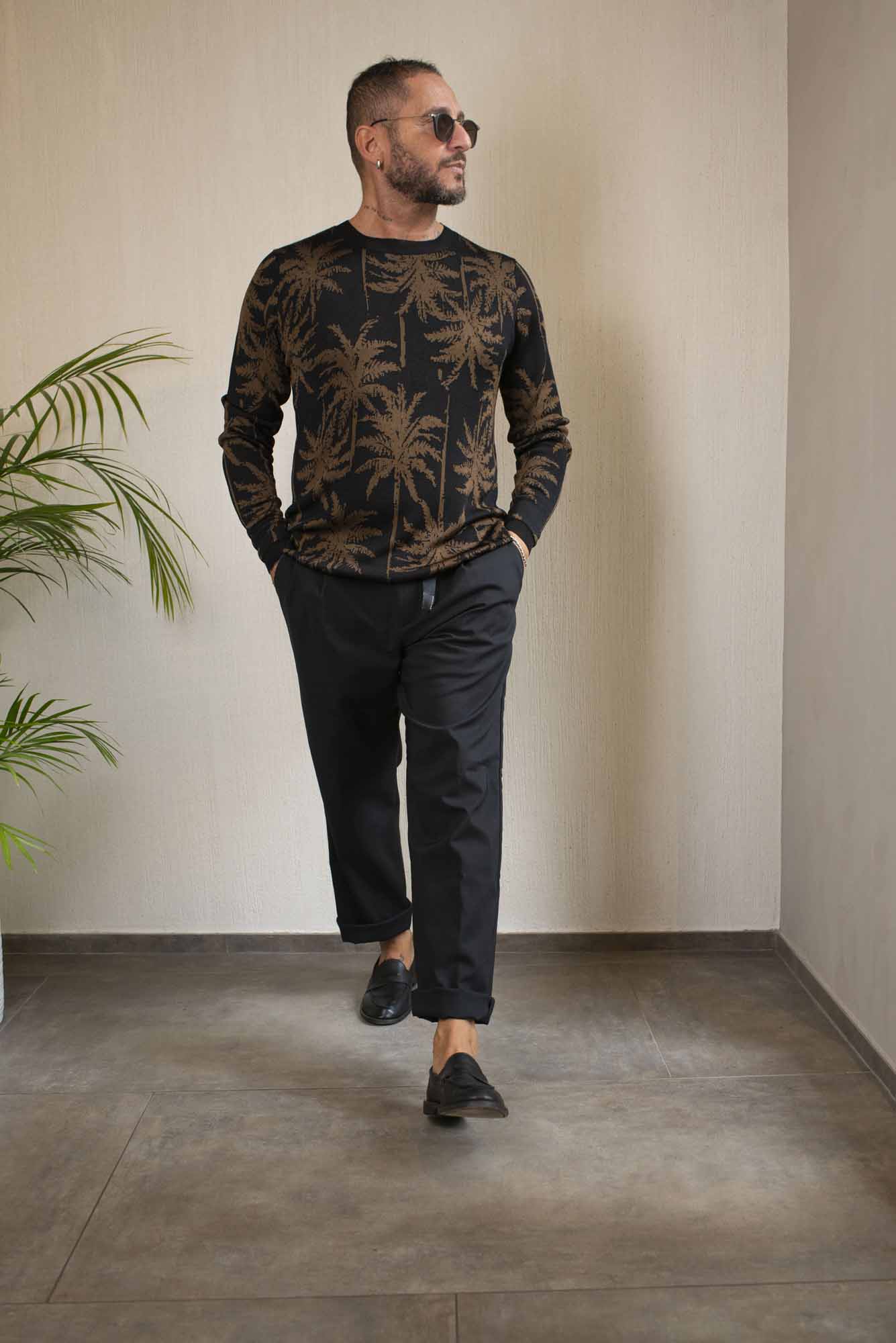 Maglia in 100% viscosa con lavorazione jacquard della palma