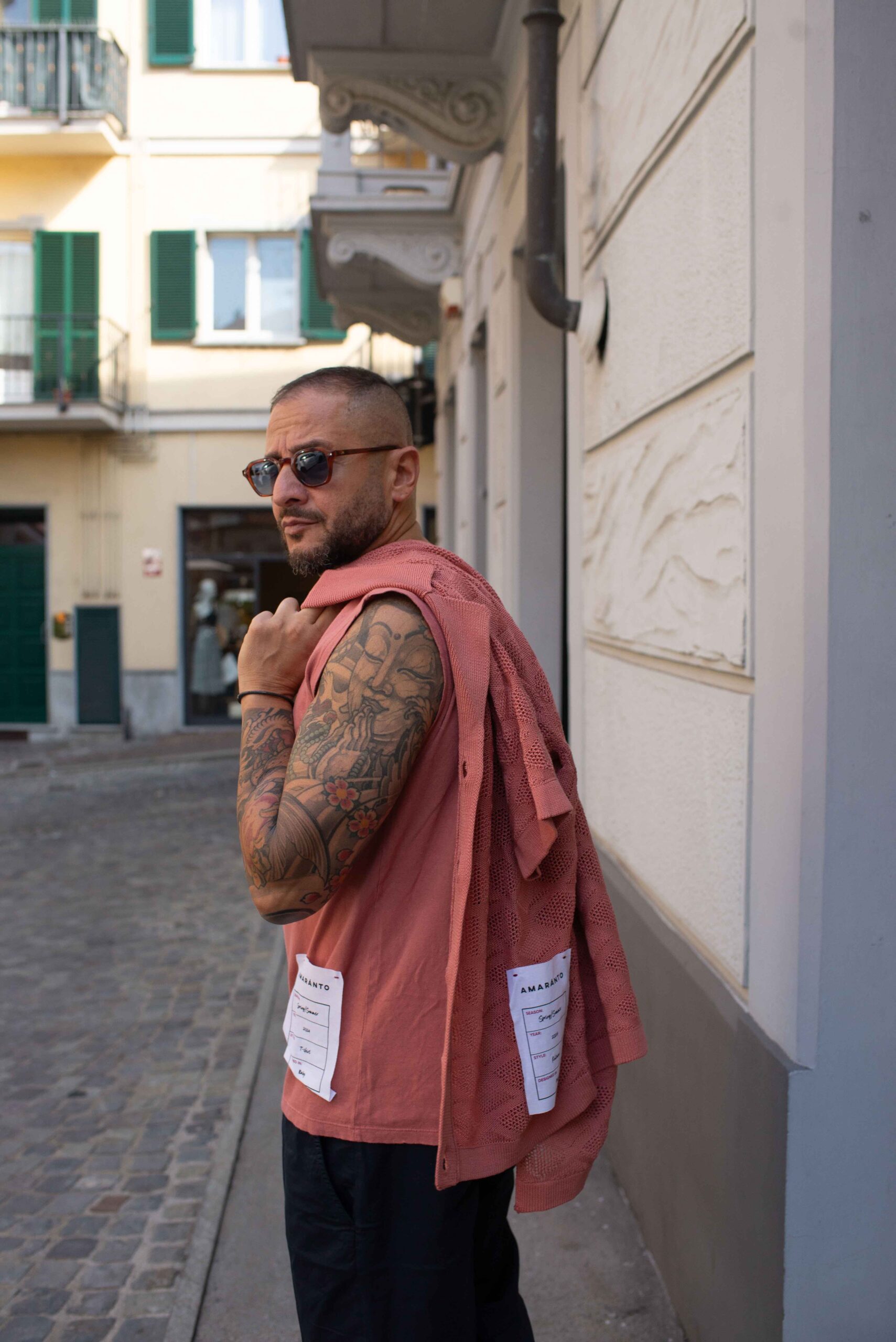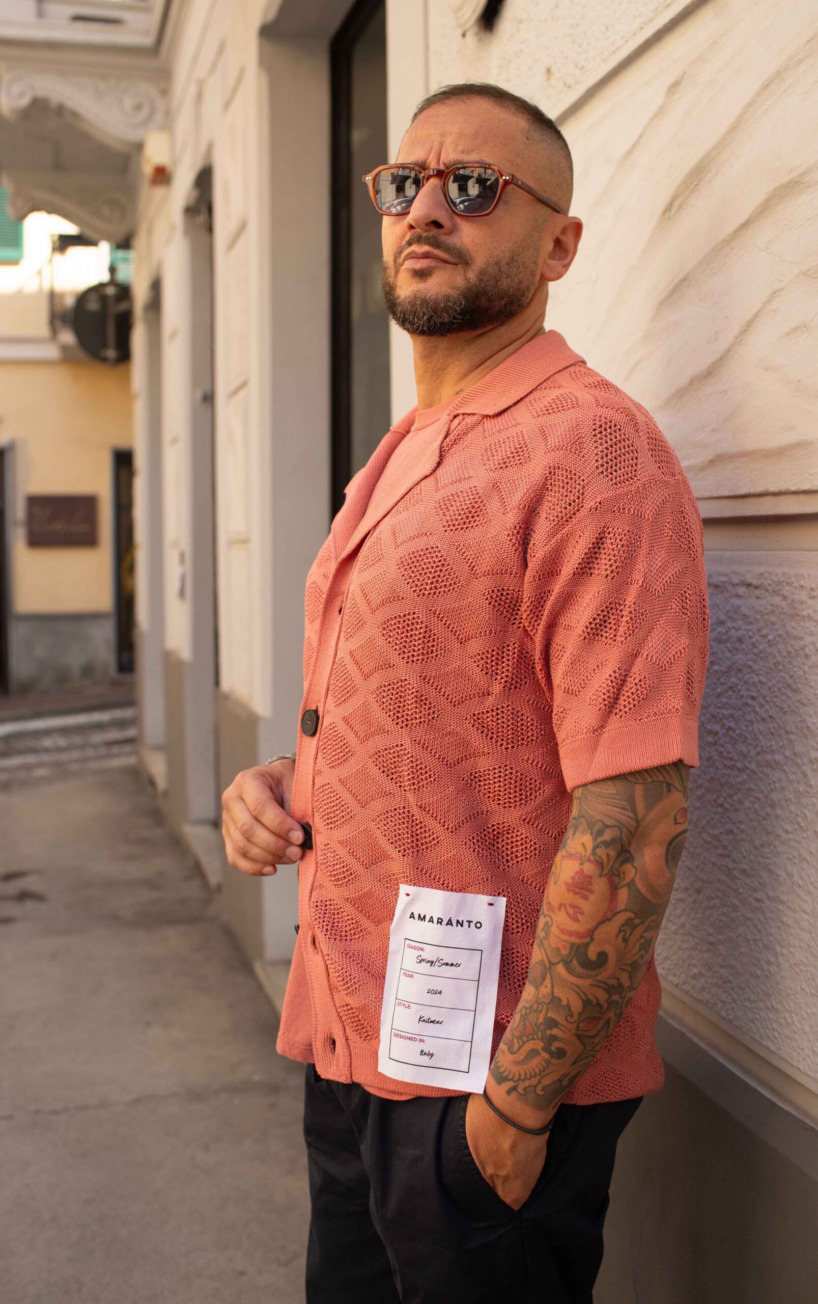 il modello è alto 1.74 pesa 73kg indossa taglia L